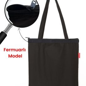 Baghashtag Siyah Fermuarlı Baskısız Bez Çanta