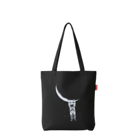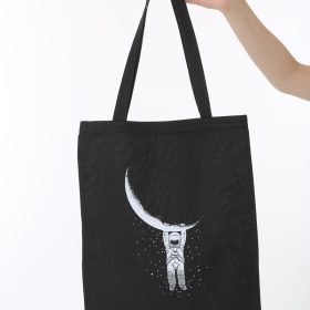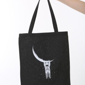 Baghashtag Aya Tutunan Astronot Baskılı Siyah Bez Çanta