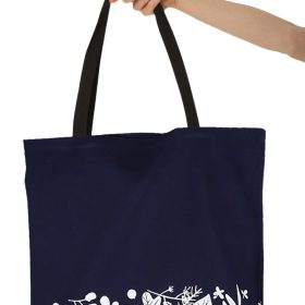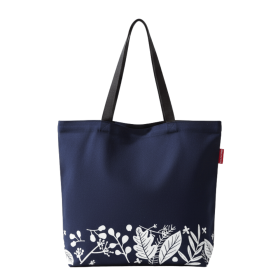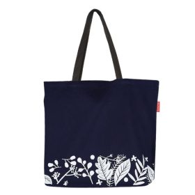 Beyaz Bitkiler Baskılı Lacivert Bez Çanta
