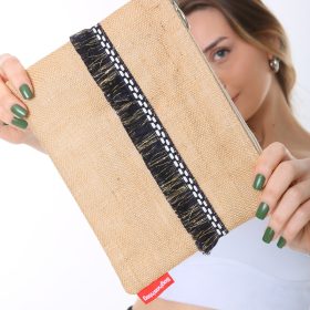 Baghashtag Siyah Püsküllü Jüt Clutch Bez Çanta