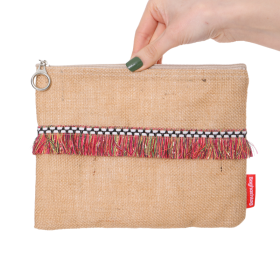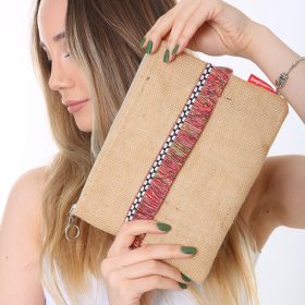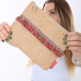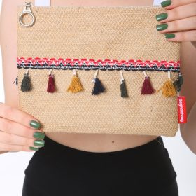 Baghashtag Kırmızı İp Püsküllü Jüt Clutch Bez Çanta