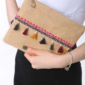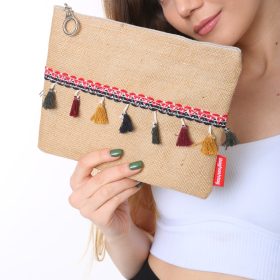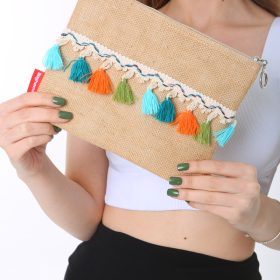 Baghashtag Vintage Pon Pon Püsküllü Jüt Clutch Bez Çanta