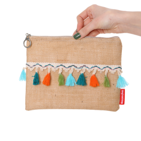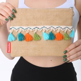 Baghashtag Renkli Pon Pon Püsküllü Jüt Clutch Bez Çanta