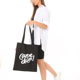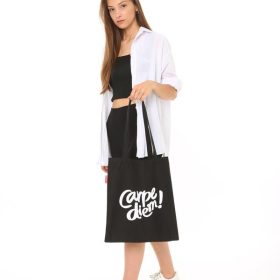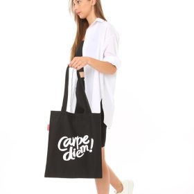 Baghashtag Siyah Bez Çanta Carpe Diem Baskılı