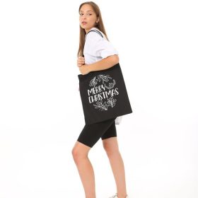 Baghashtag Siyah Bez Çanta Merry Christmas Baskılı