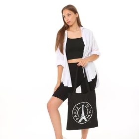 Baghashtag Siyah Bez Çanta Paris Baskılı