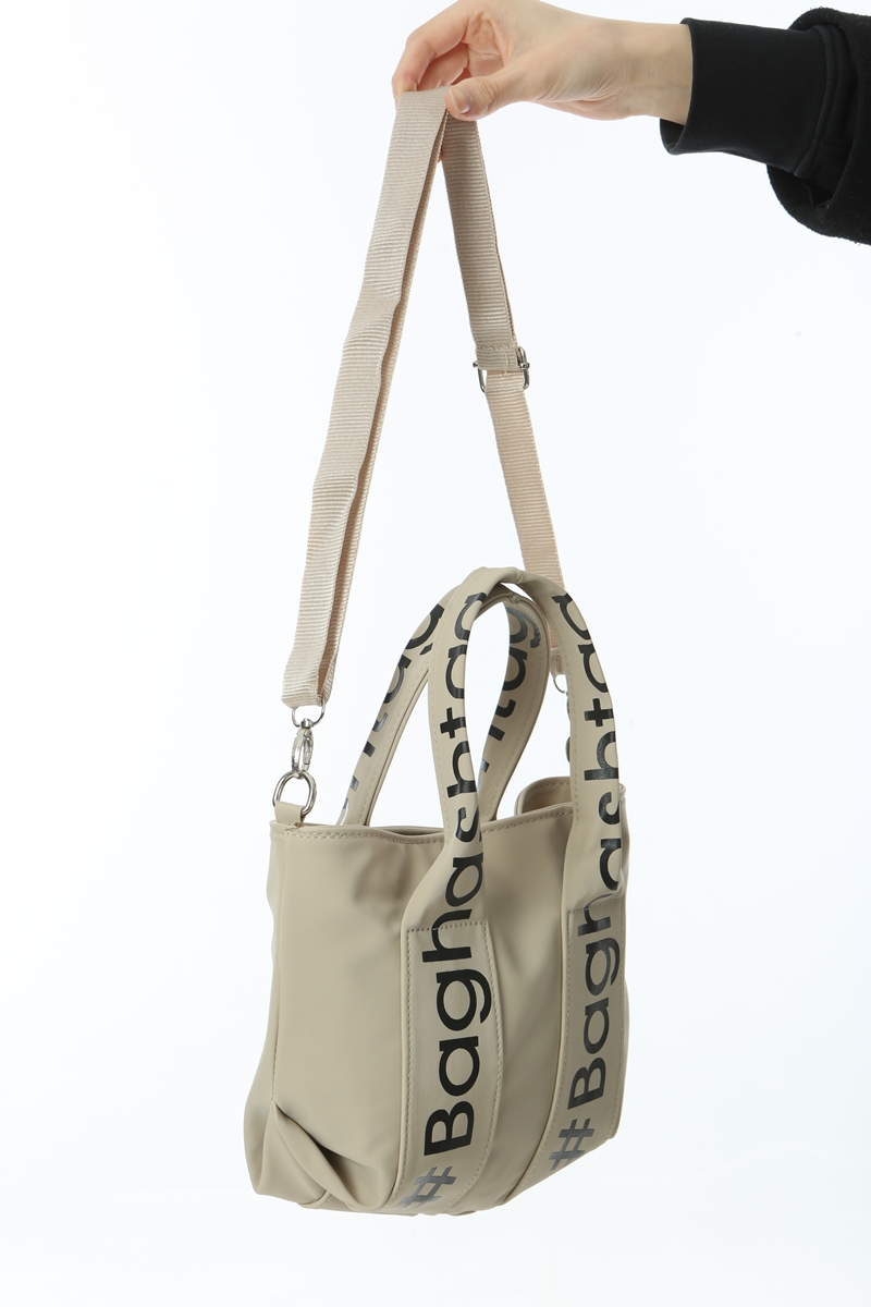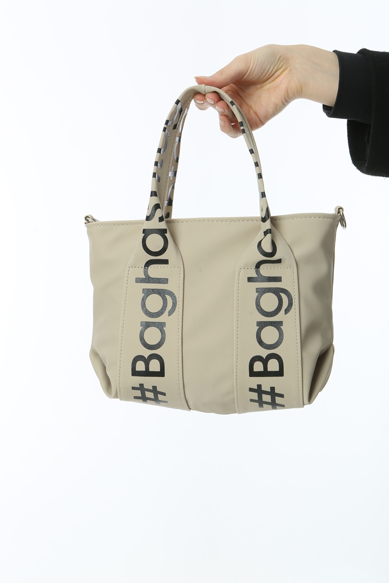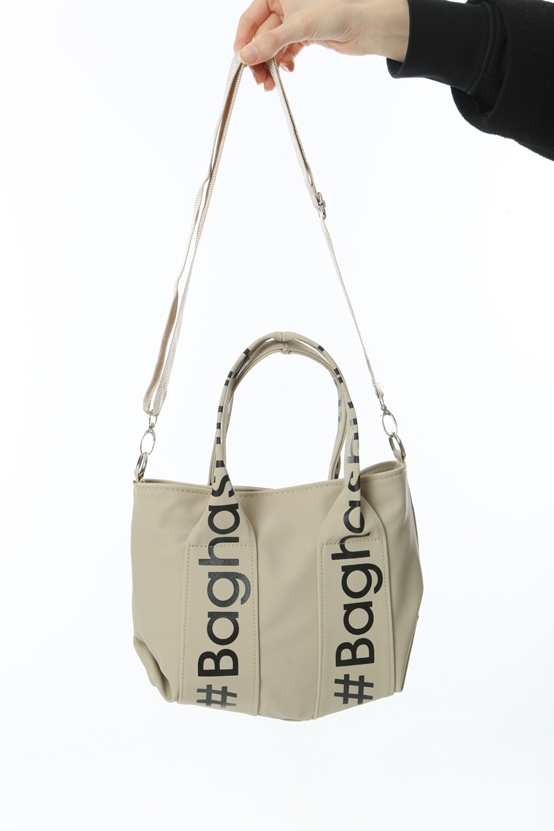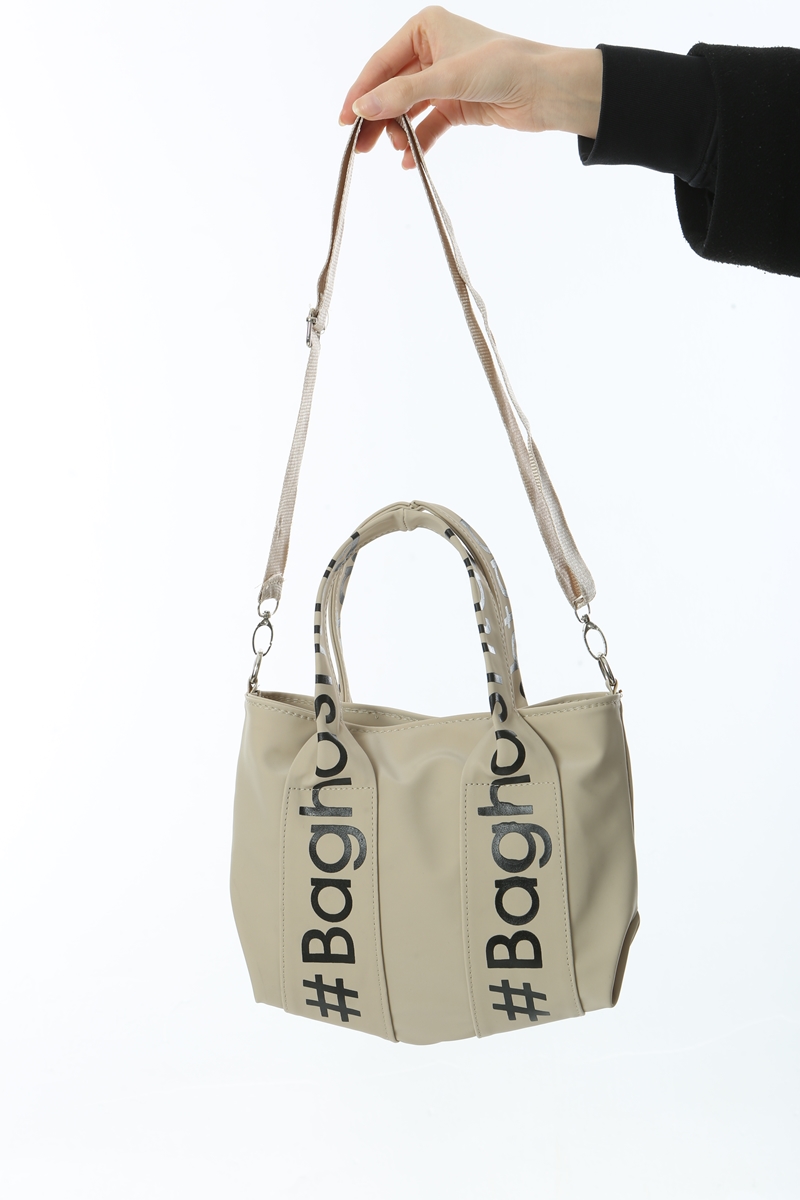 Baghashtag Mini Su Geçirmez Kulp Yazılı Deri Tote Çanta