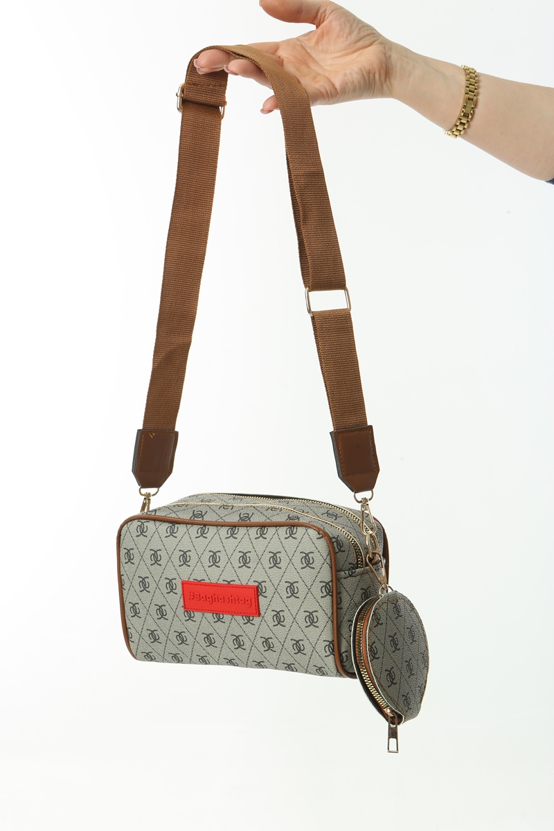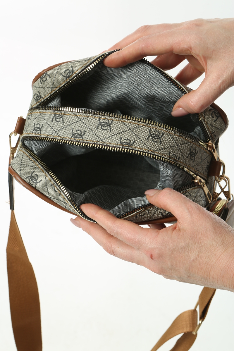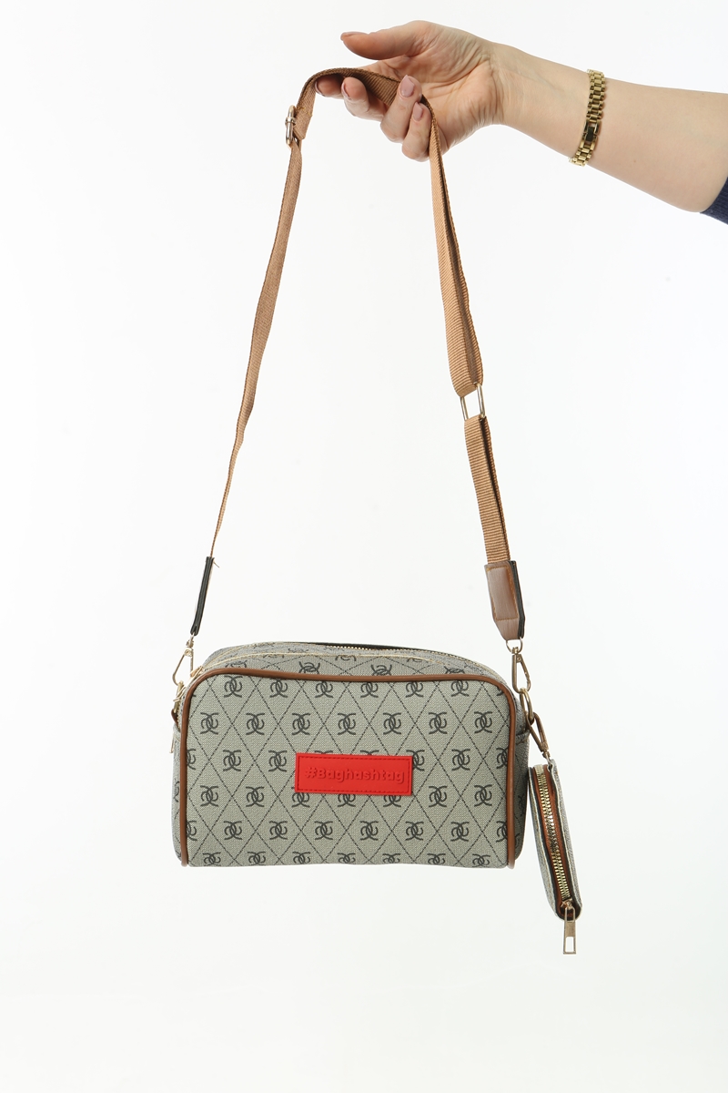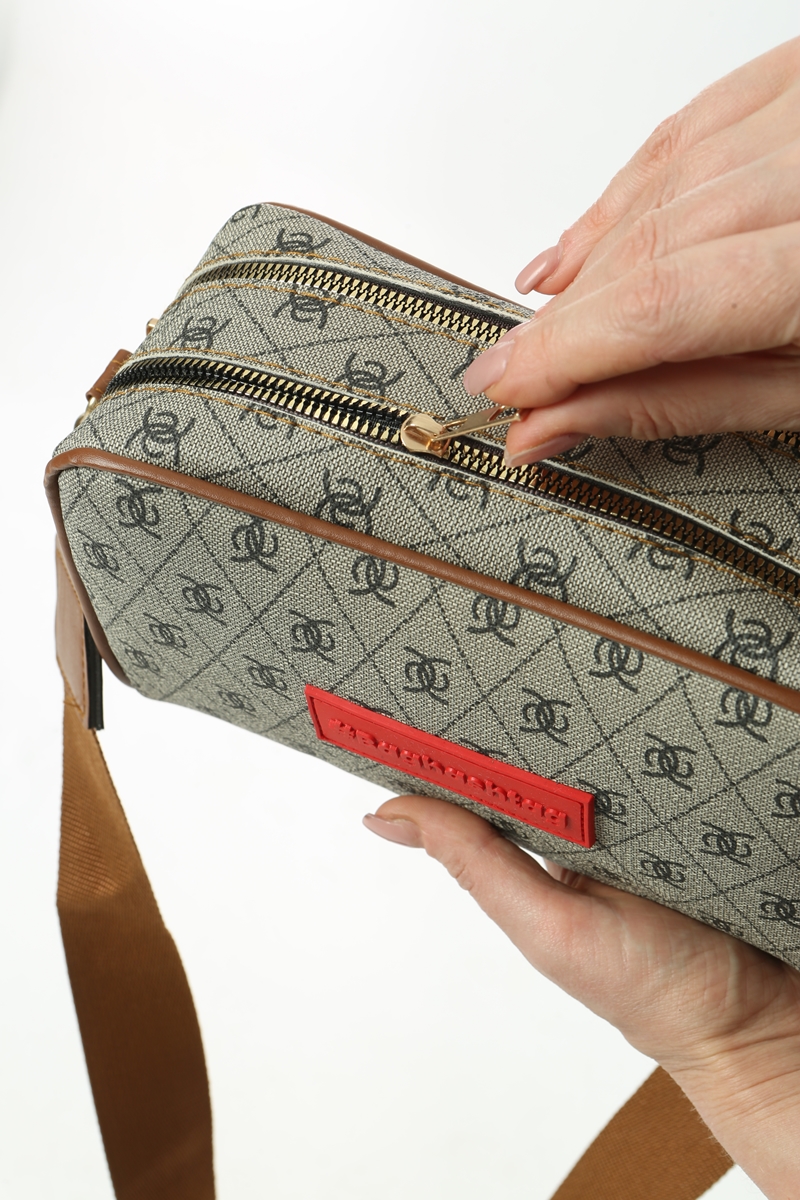 Baghashtag Bej Minimal Desenli Çift Fermuarlı Deri Çanta