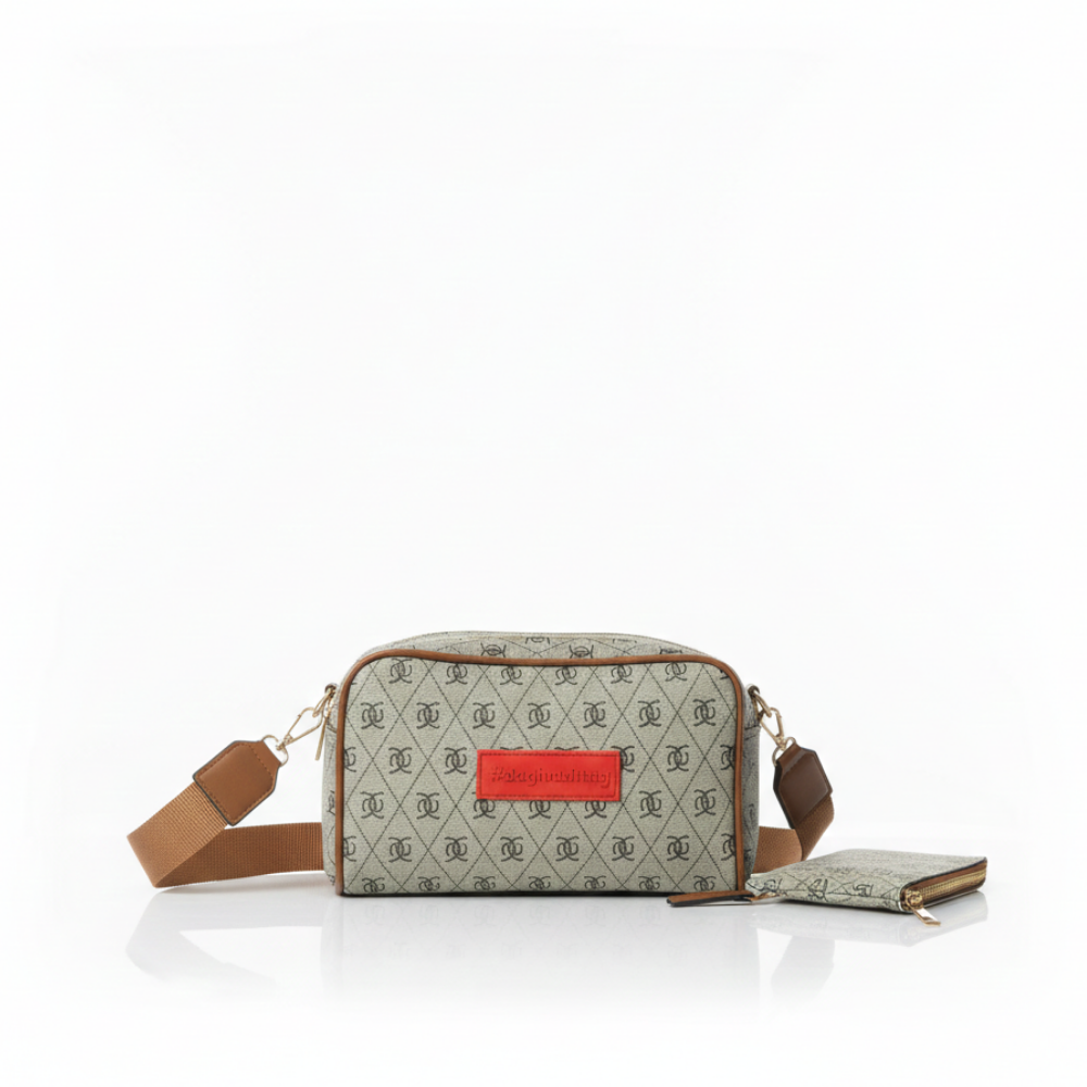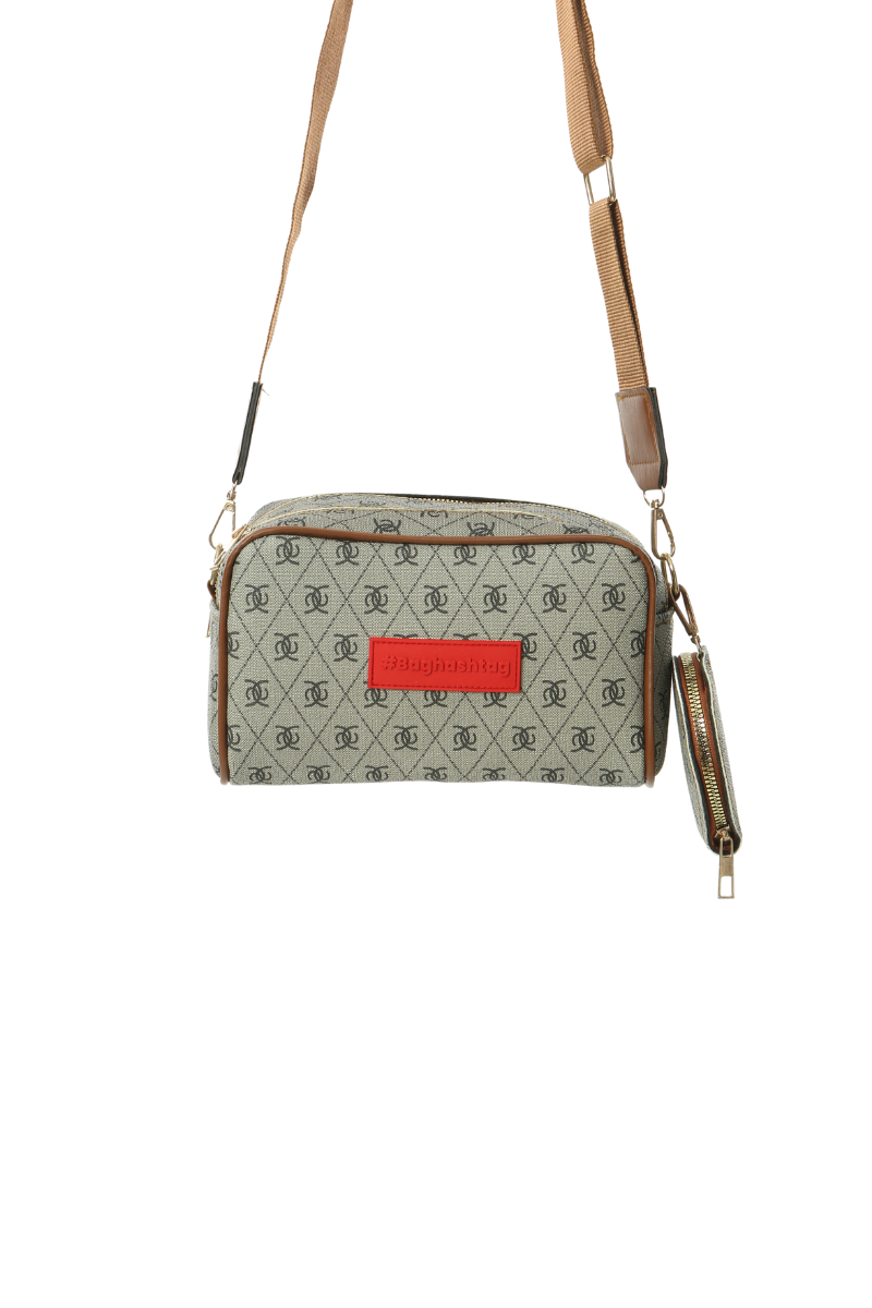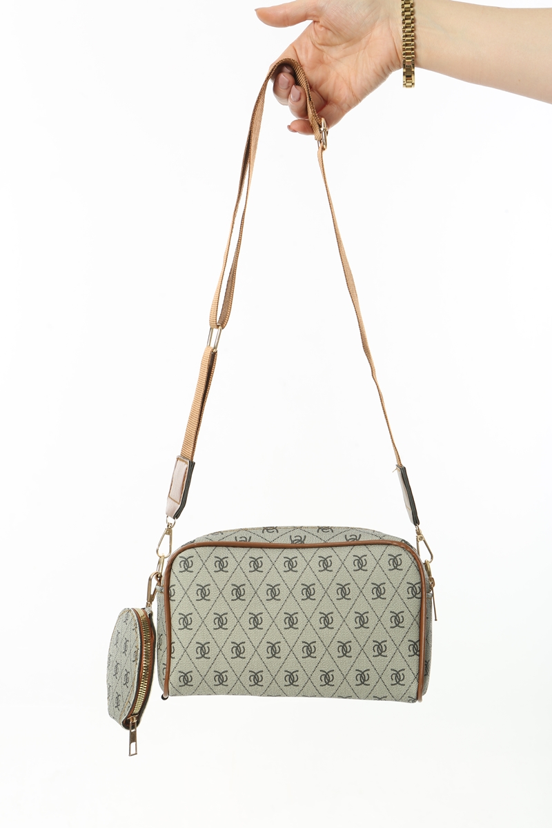 Baghashtag Bej Minimal Desenli Çift Fermuarlı Deri Çanta