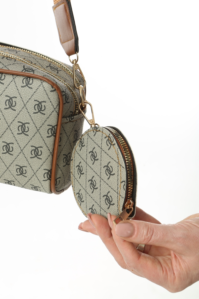 Baghashtag Çift Fermuarlı, Çift Gözlü Minimal Desen Baskılı Deri Çanta