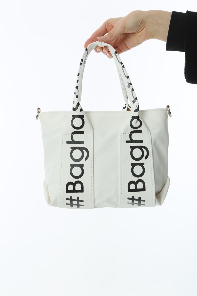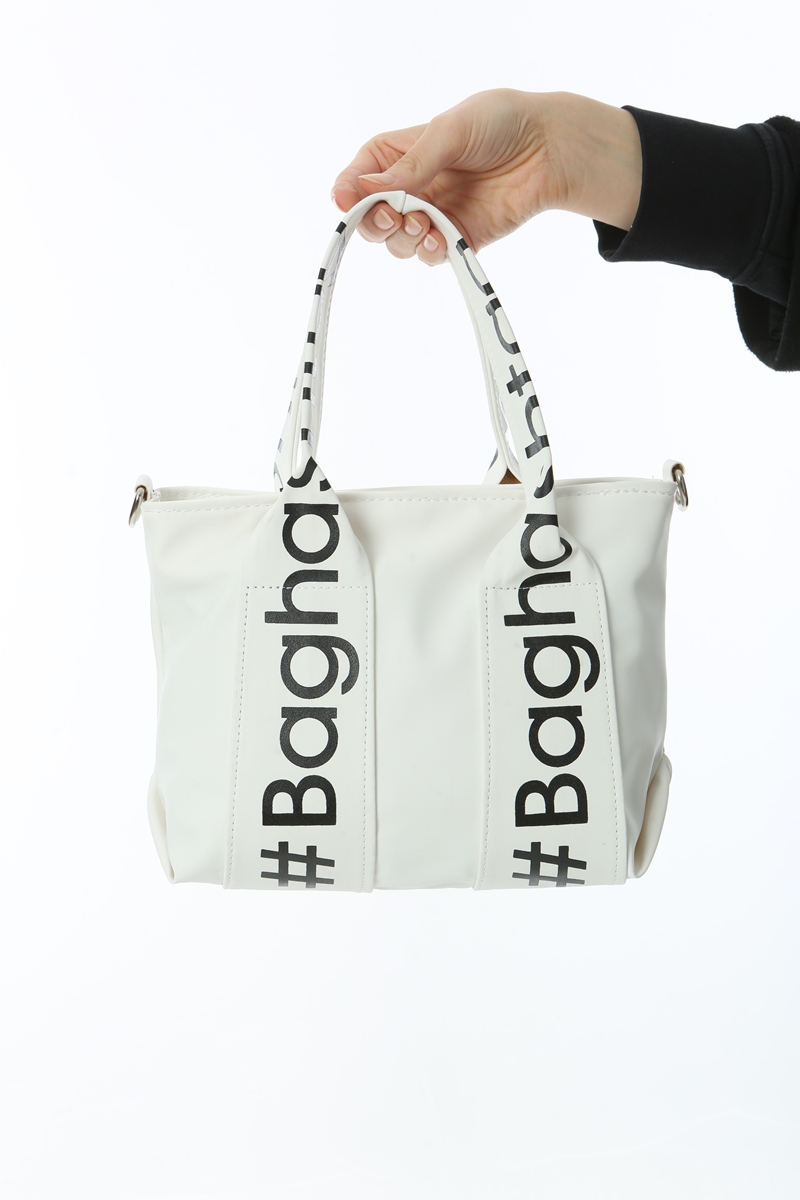 Baghashtag Mini Su Geçirmez Kulp Yazılı Deri Tote Çanta