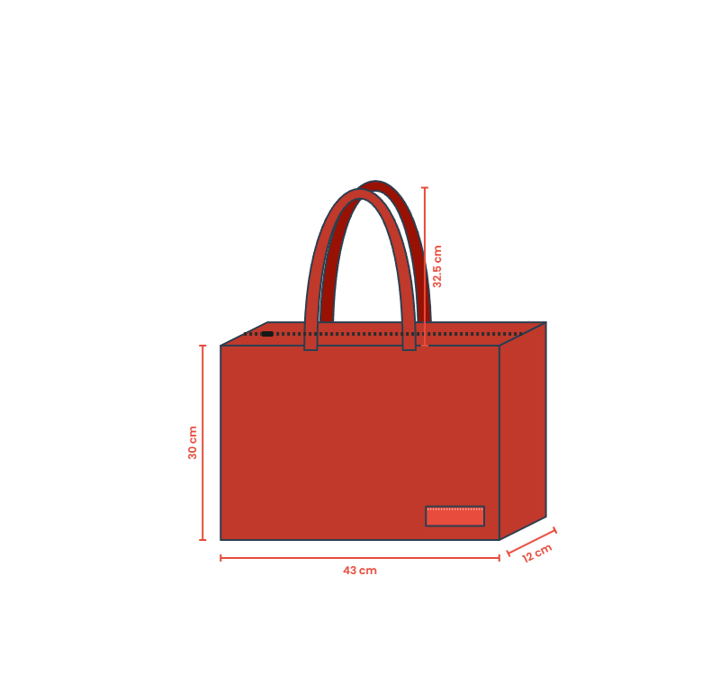 Ölçüler: 43 cm en x 30 cm boy x 12 cm körük