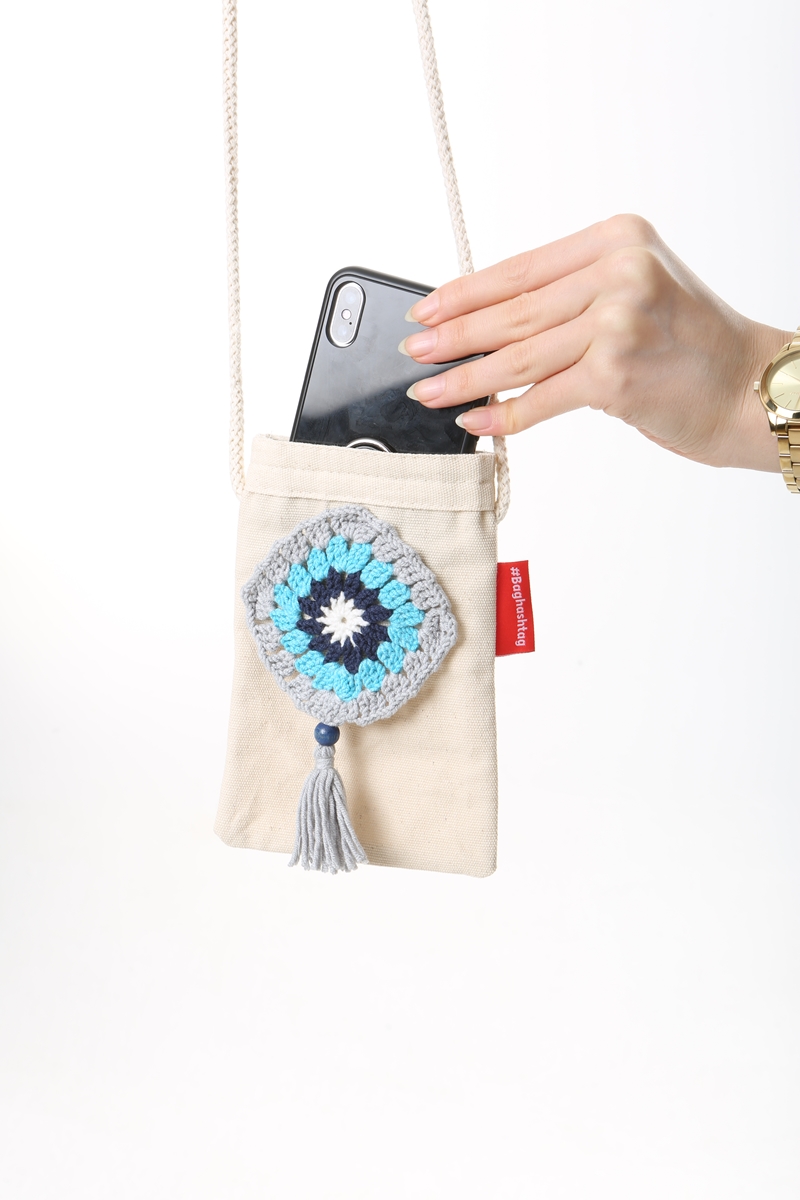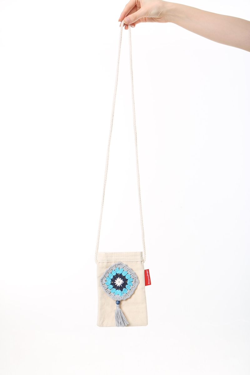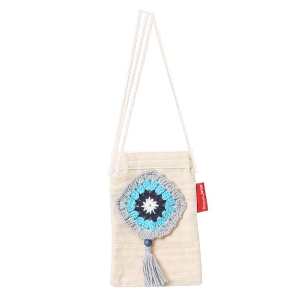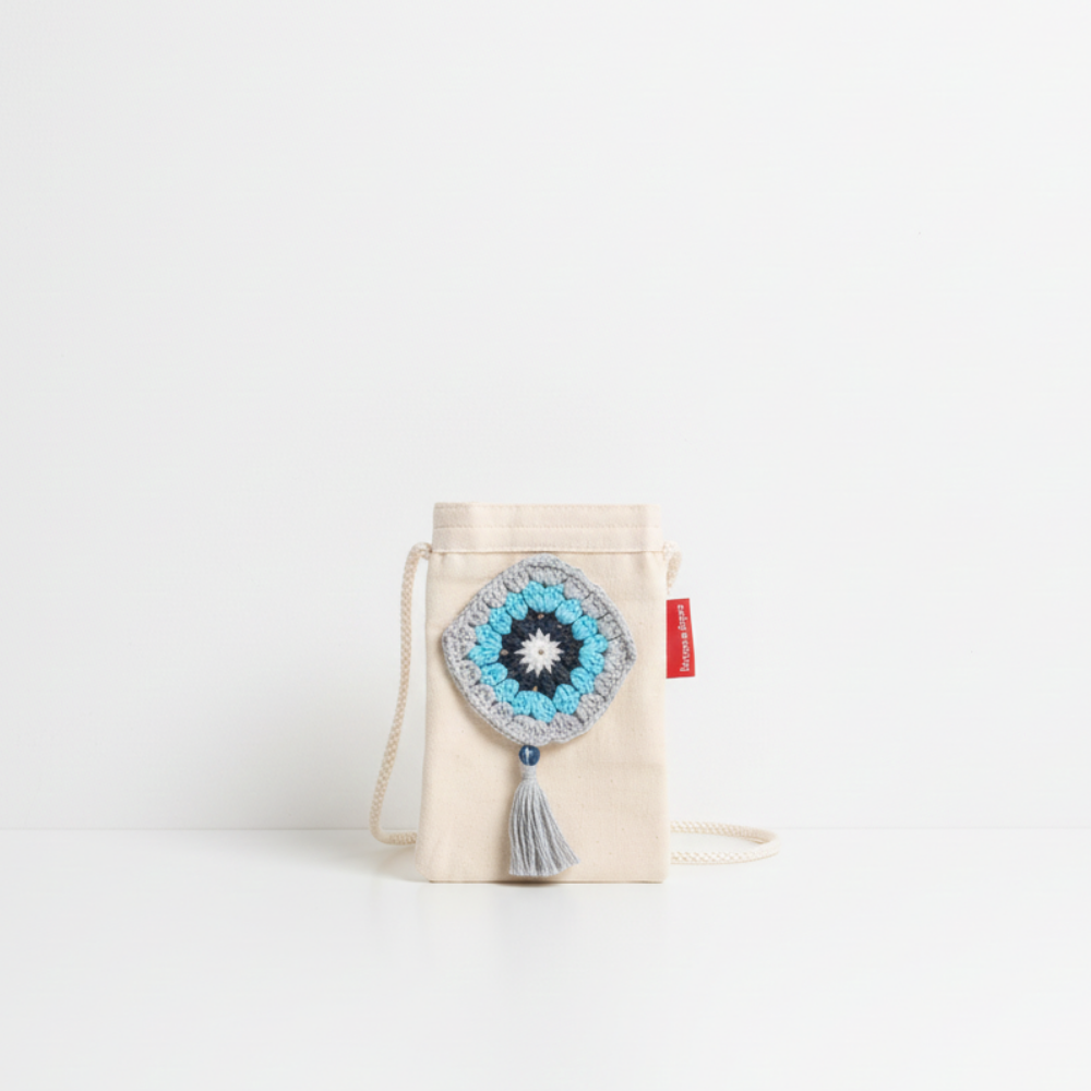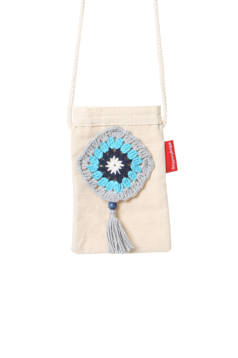 Baghashtag Mavi Desen El İşlemeli Kanvas Telefon Çantası