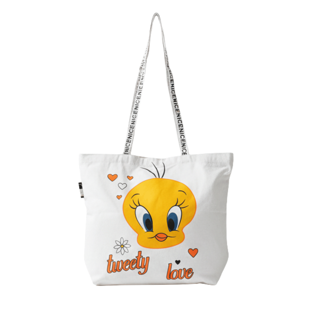 Baghashtag Sevimli Civciv Baskılı Beyaz Bez Çanta
