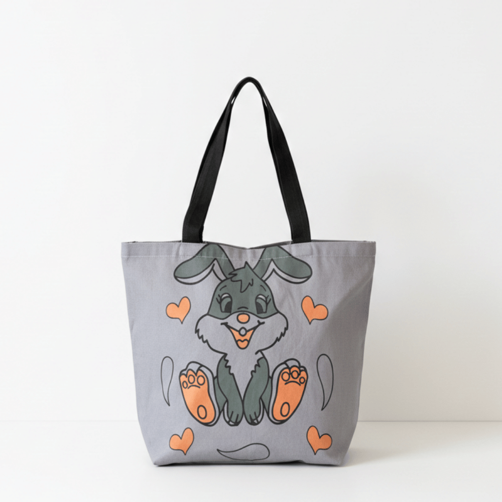Baghashtag Sevimli Tavşan Baskılı Gri Bez Çanta
