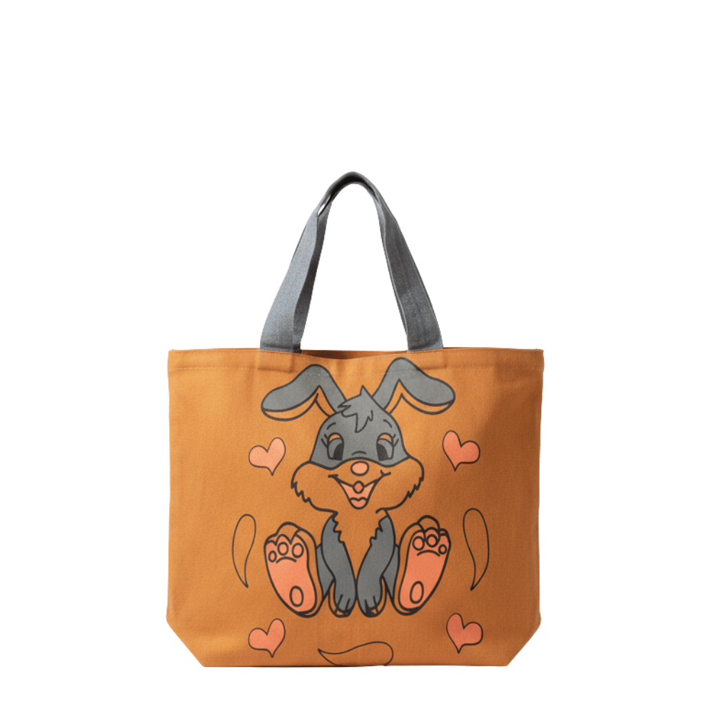 Baghashtag Sevimli Tavşan Baskılı Kahverengi Bez Çanta