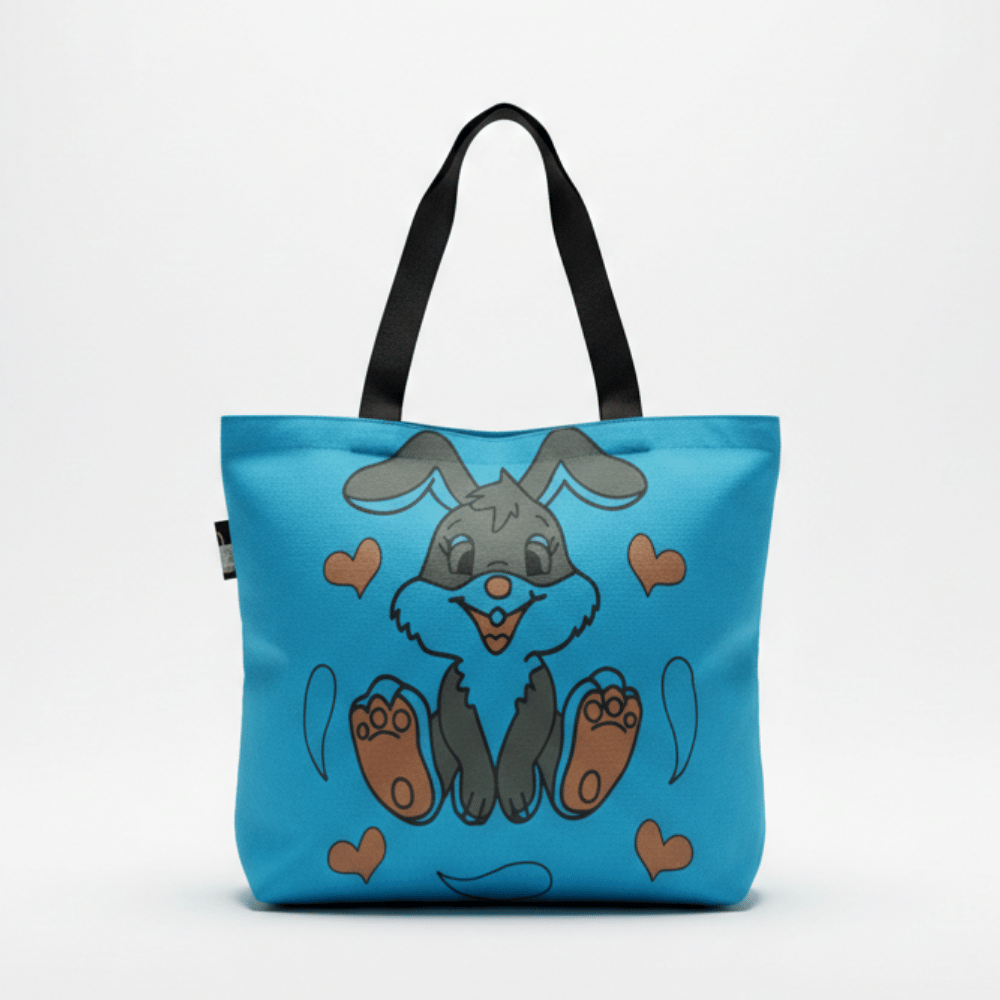 Baghashtag Sevimli Tavşan Baskılı Mavi Bez Çanta