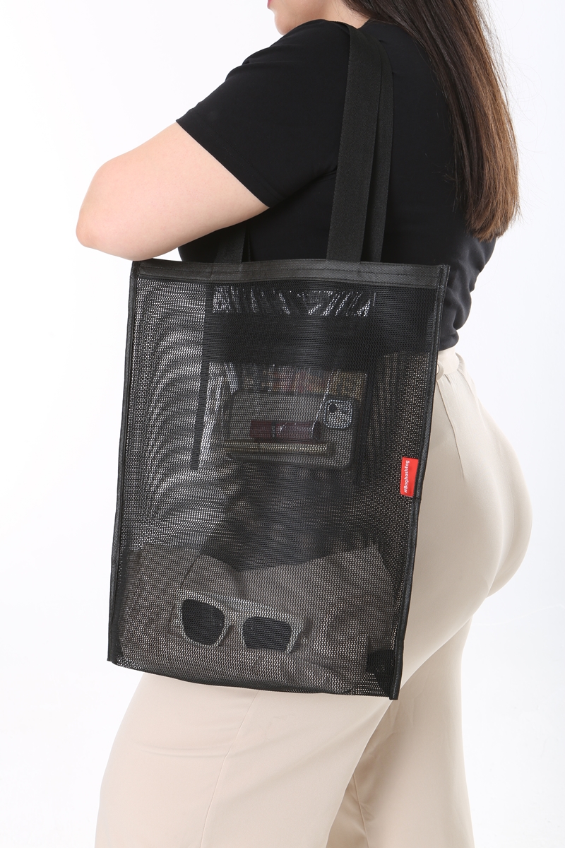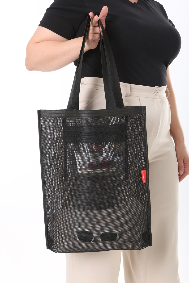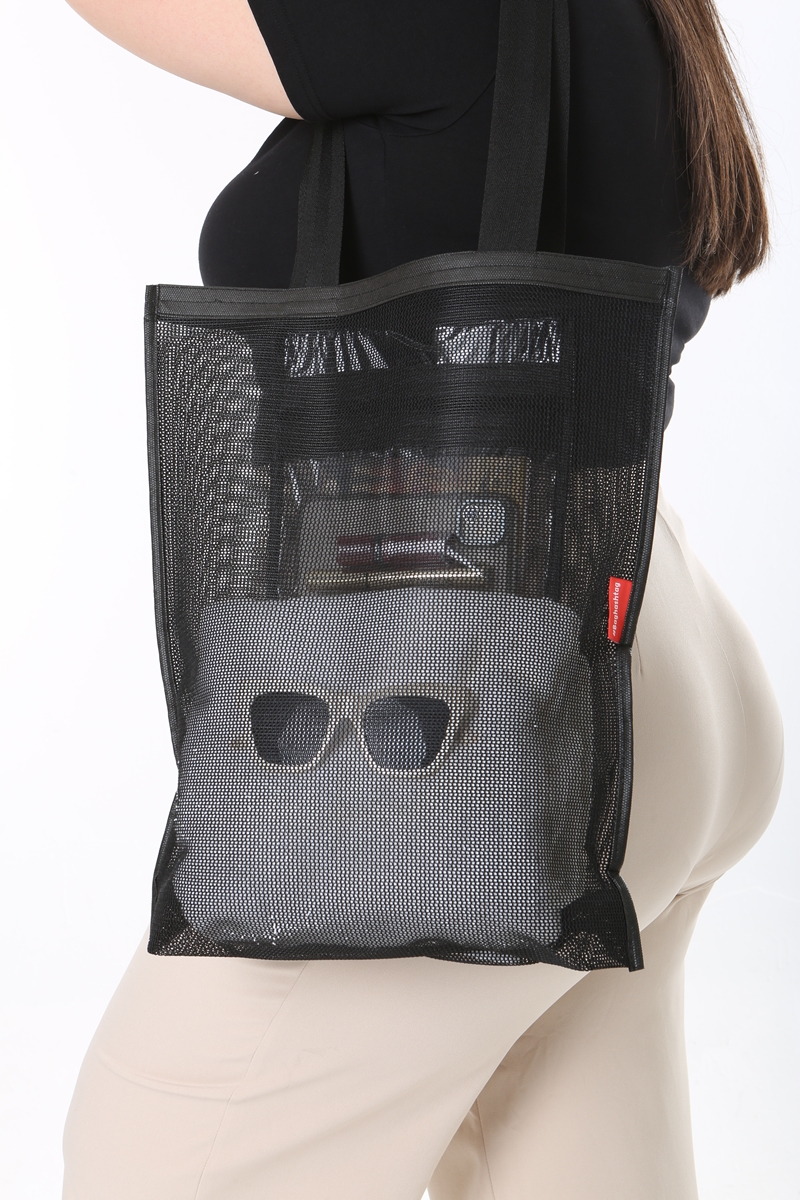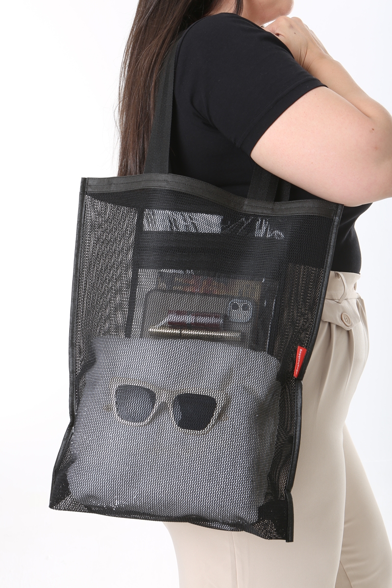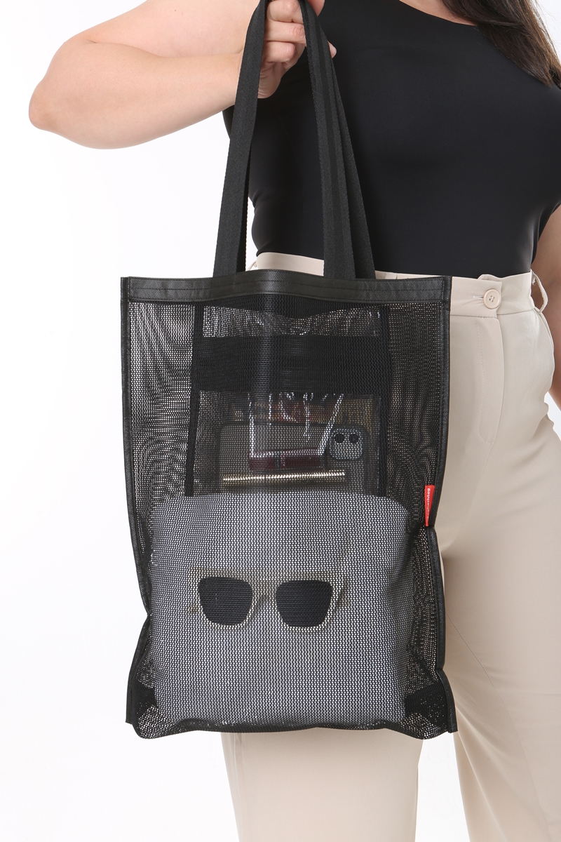 - Hem şık hem de rahatlık sağlayan basit file çanta modeli.