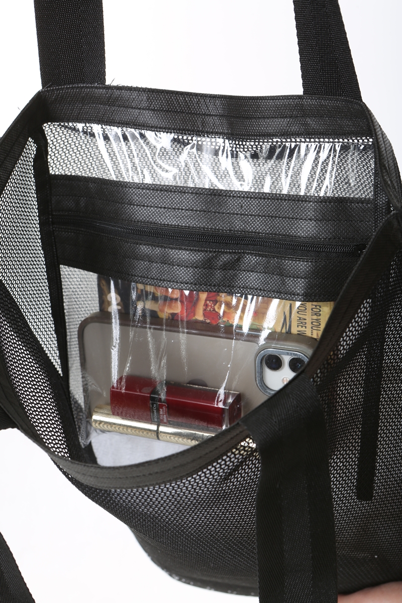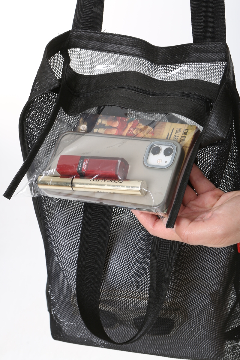 - Çantanın fermuarlı şeffaf cep vardır.