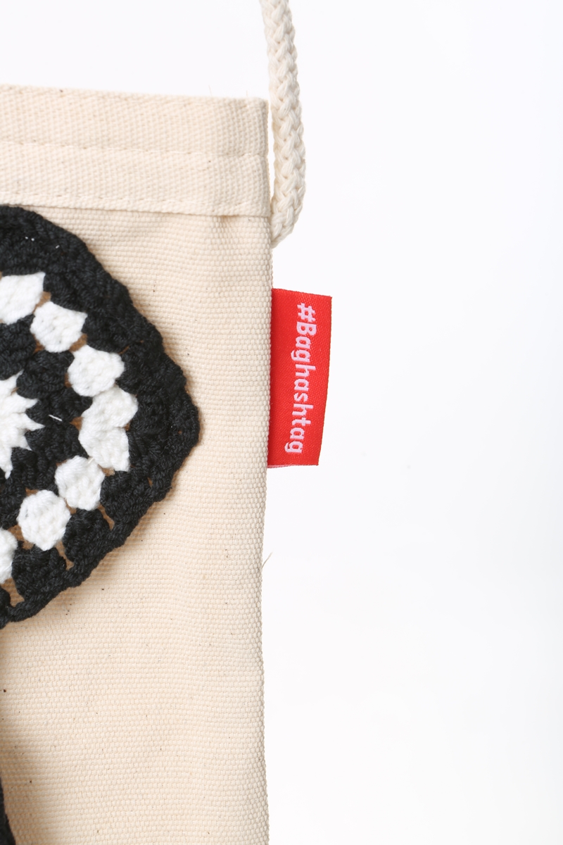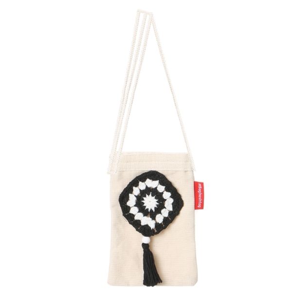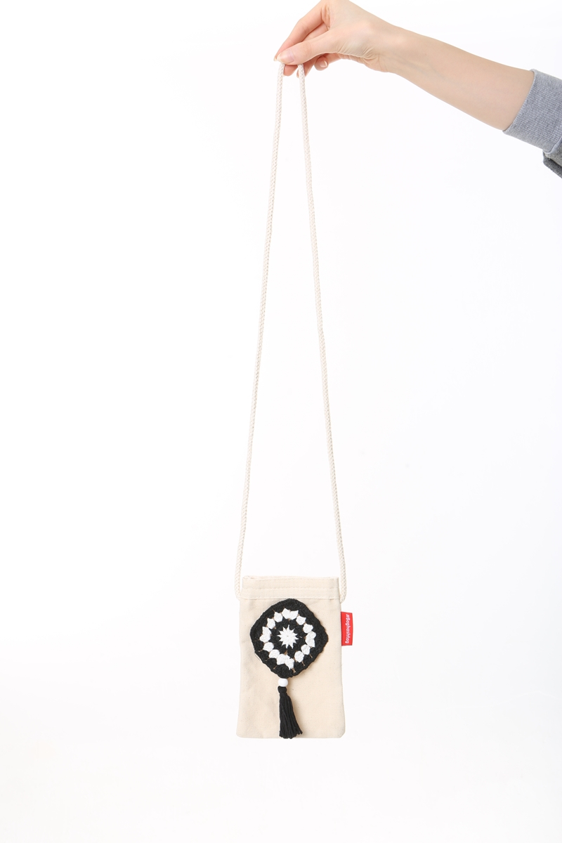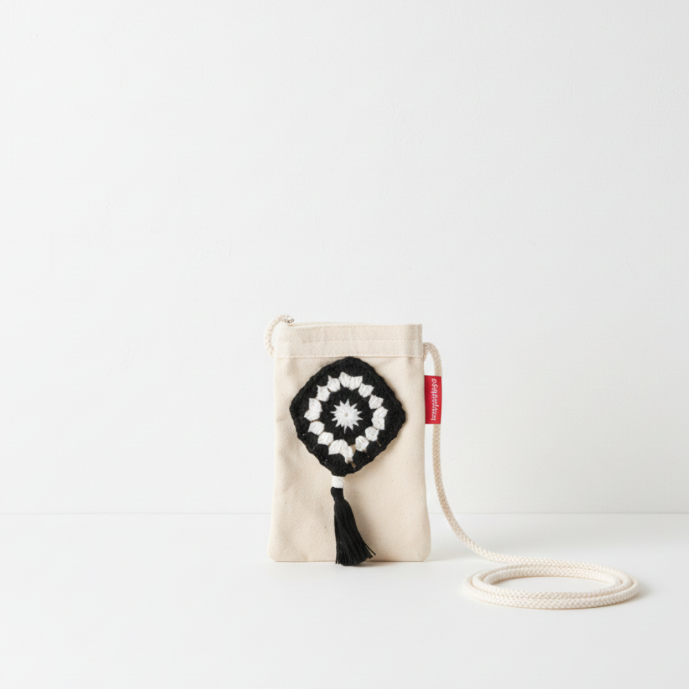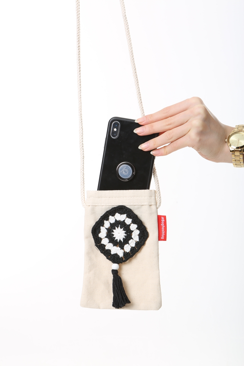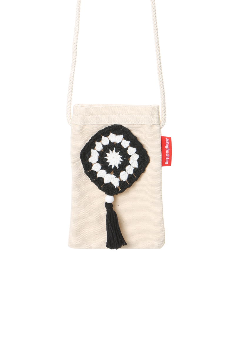 Baghashtag Siyah Desen El İşlemeli Kanvas Telefon Çantası