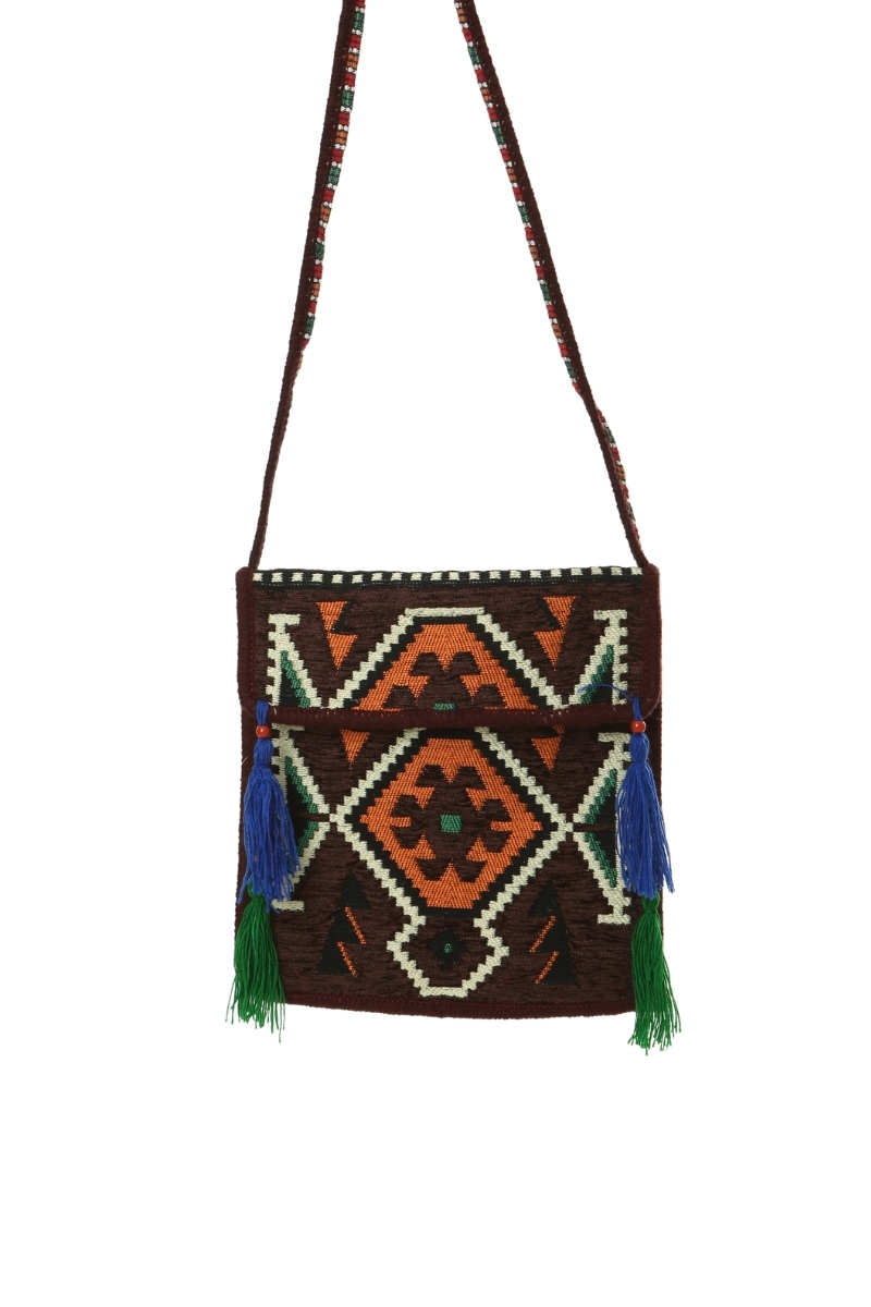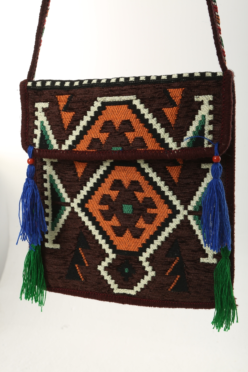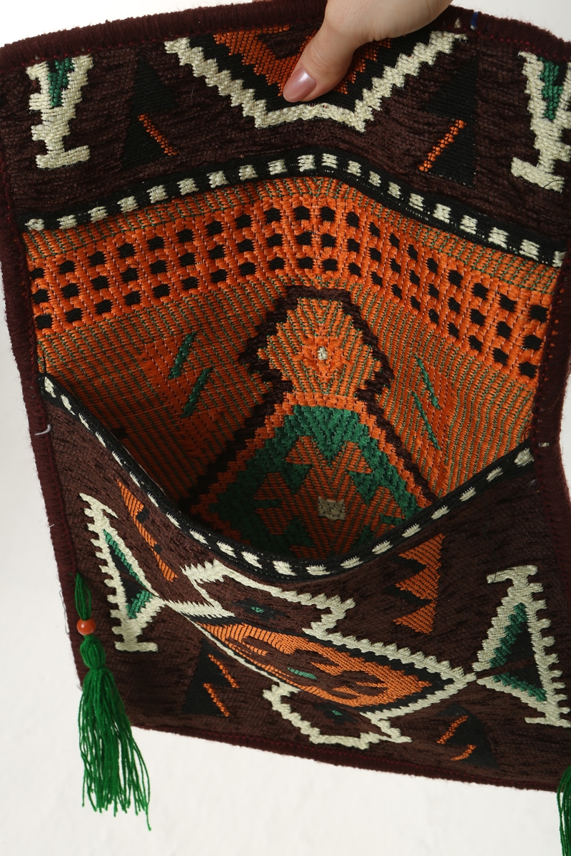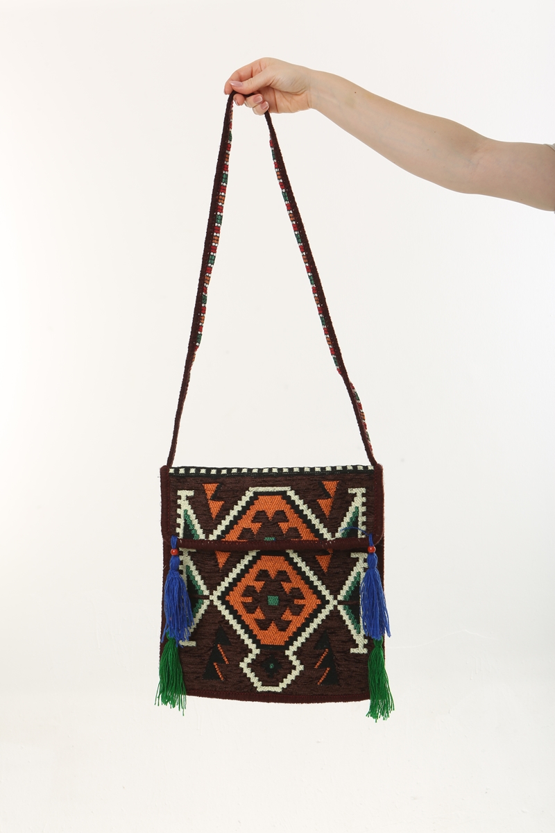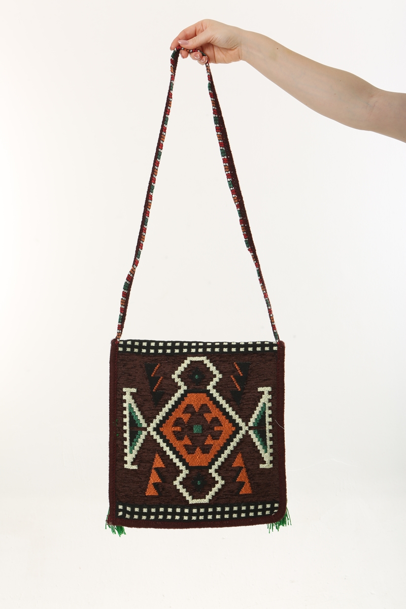 Baghashtag Siyah Kilim Motifli Heybe Çanta