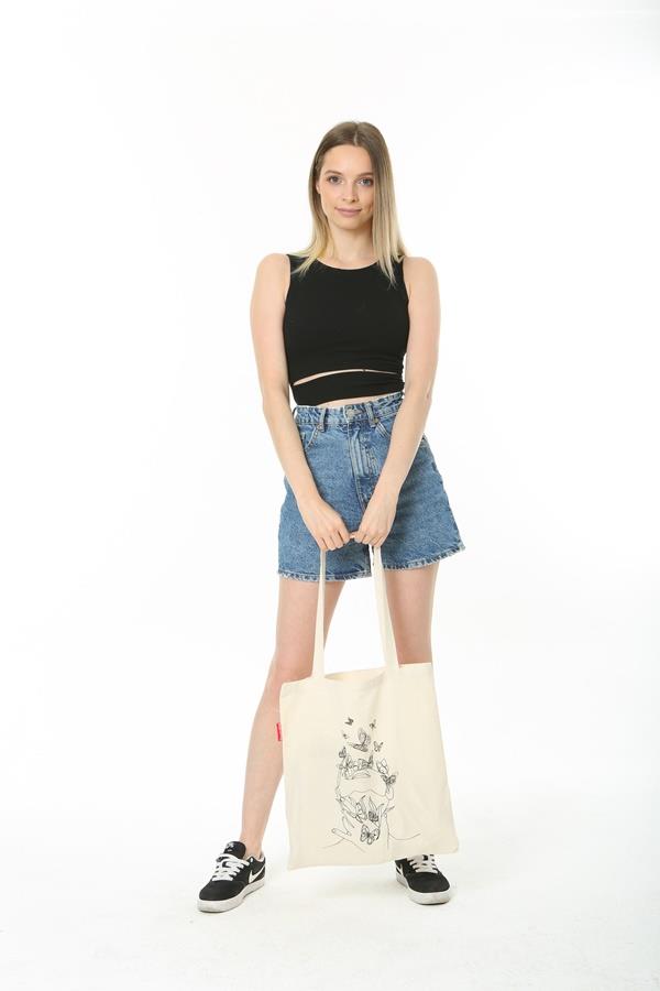 - Hem şık hem de rahatlık sağlayan basit bez çanta modeli.